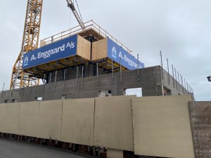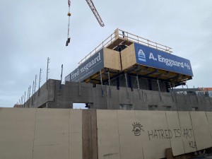 Så fik vi hævet vores klatreforskalling 1. gang. Vi er nu igang med arbejdet på kernevæggen på 2. Sal. Vi forventer, at kunne støbe den i næste uge. Vi er