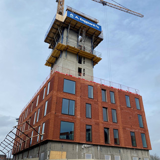 Arbejdet med vores højhus skrider godt frem. Vi regner med at være i top med kernen (det grå i midten) inden sommerferien i år. Arbejdet med dæk og facader kommer til at strække sig henover efteråret. Vi er godt i gang med at planlægge de indvendige arbejder, så entreprenører og materialer er klar, når huset er tæt eller betonarbejderne tillader det. I resten af projektet arbejder vi stadig med de dybeste fundamenter - dog har vi allerede monteret de første vægelementer ud mod fredensgade.