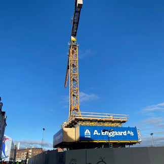 I dag foretages den 1. støbning fra vores klatreplatform. Det er væggen i betonkernen på 1. sal som vi støber. Klatreplatformen gør det muligt for os at arbejde sikkert i højden.